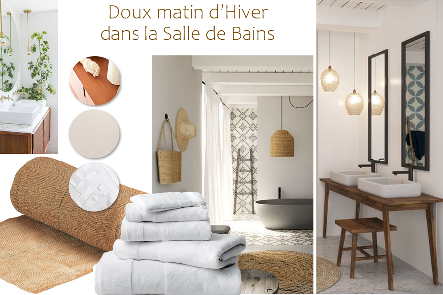Autre contrainte : la luminosité. En effet, la maison est exposée Est / Ouest avec les plus grandes ouvertures à l’Est et une vue forêt côté Ouest ; il faut donc faire entrer un maximum la lumière. Le concept décoratif sur le thème de la lumière en toute saison et à tout moment de la journée est parti de cette contrainte.