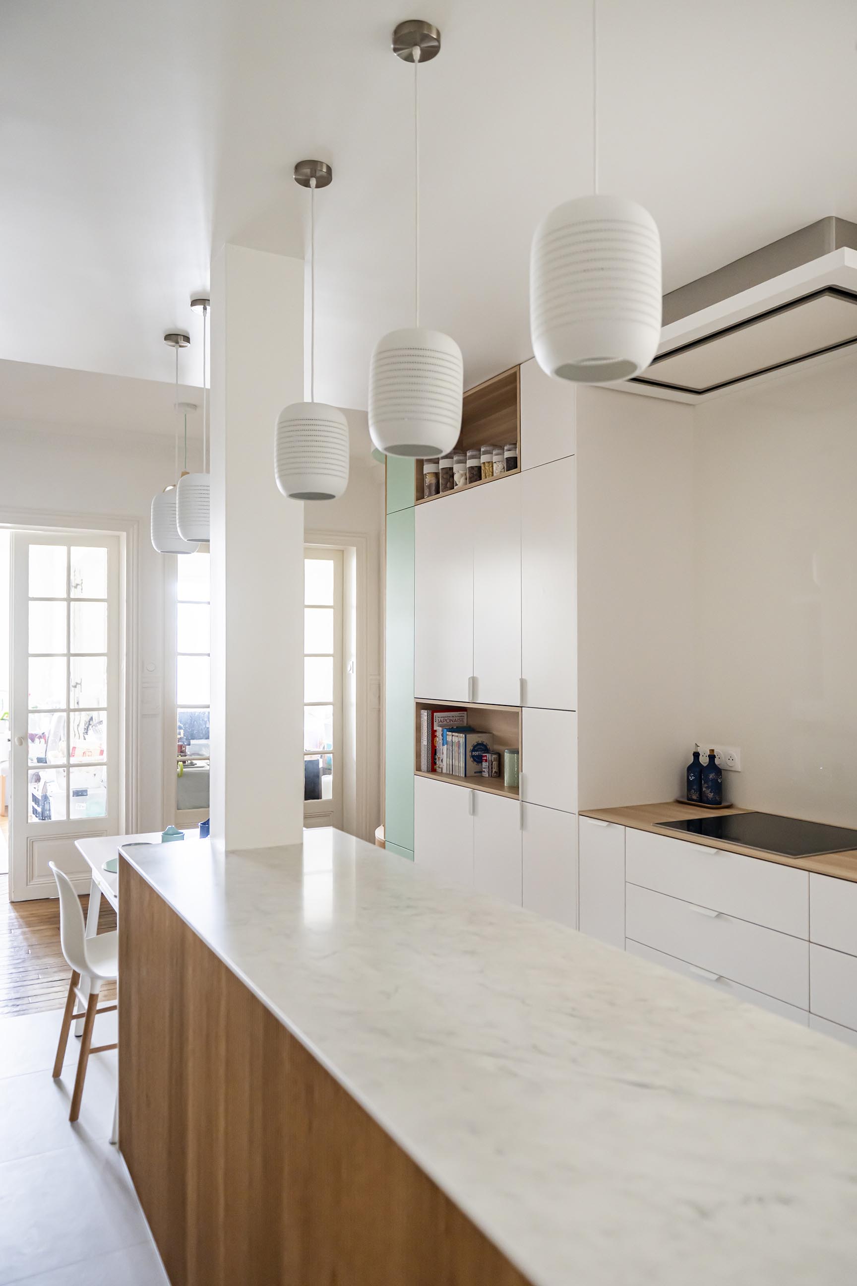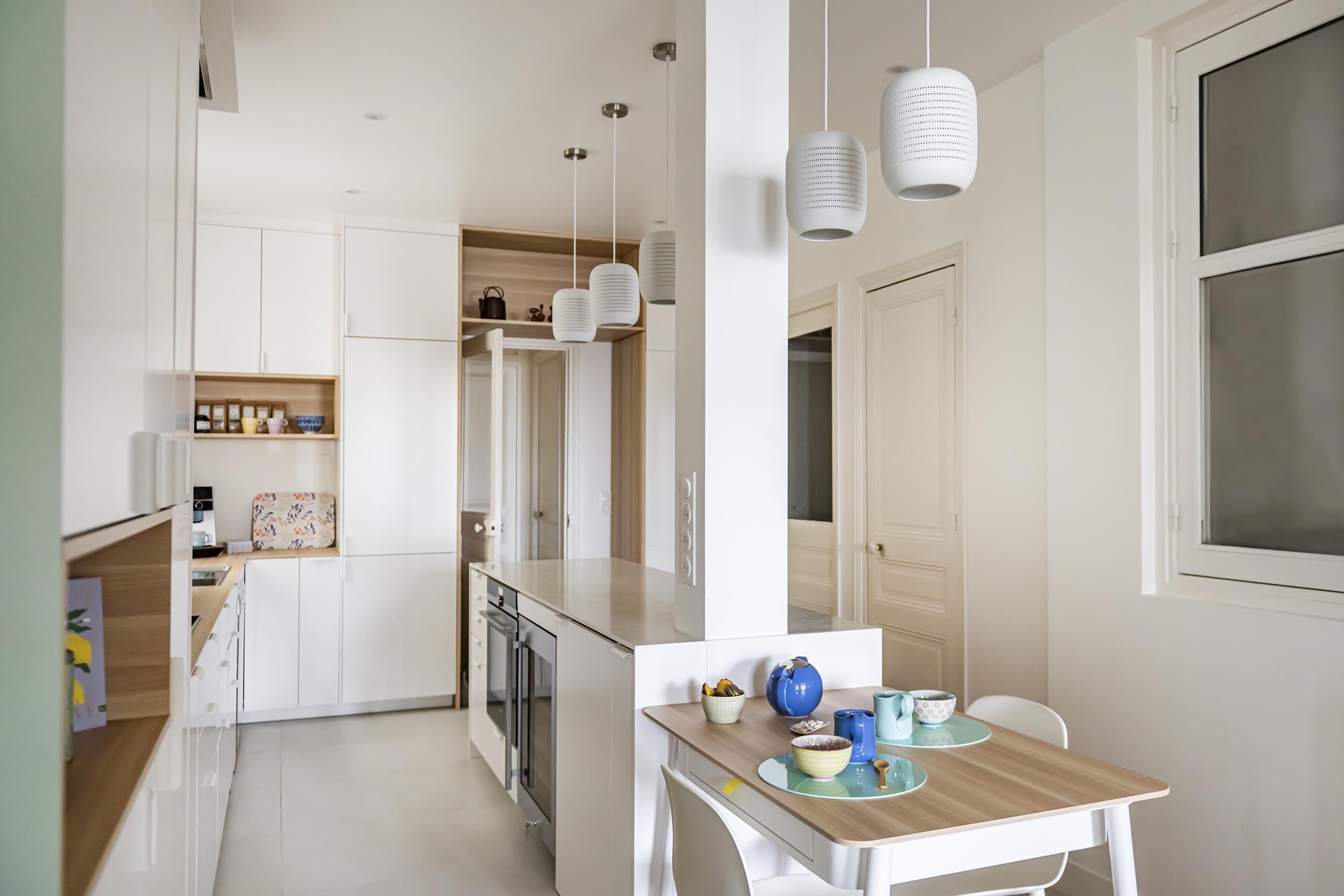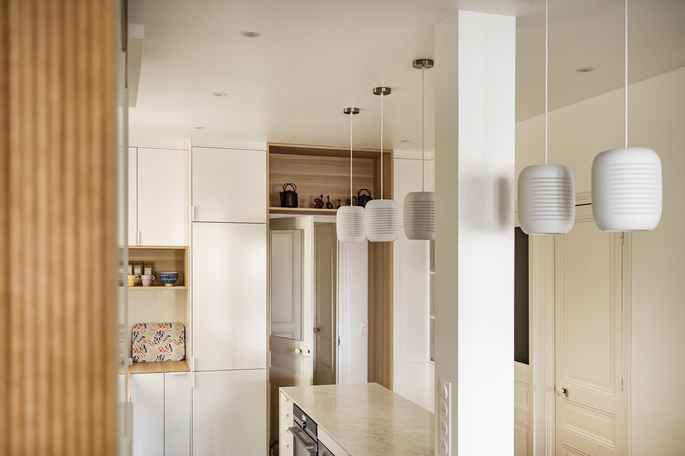 Rénovation totale entrée, cuisine, WC, salle de bain et chambre parentale dans un appartement familial avec tout le charme de l’Haussmannien. Dans ce projet, il a aussi été question d’isolation phonique et thermique, de changement de fenêtres et de création de mobilier sur-mesure. Au programme : modernisation dans un esprit design intemporel et épuré, préservation du charme de l’ancien et optimisation des rangements jusque dans les moindres recoins, tout cela Made in France ou Europe !