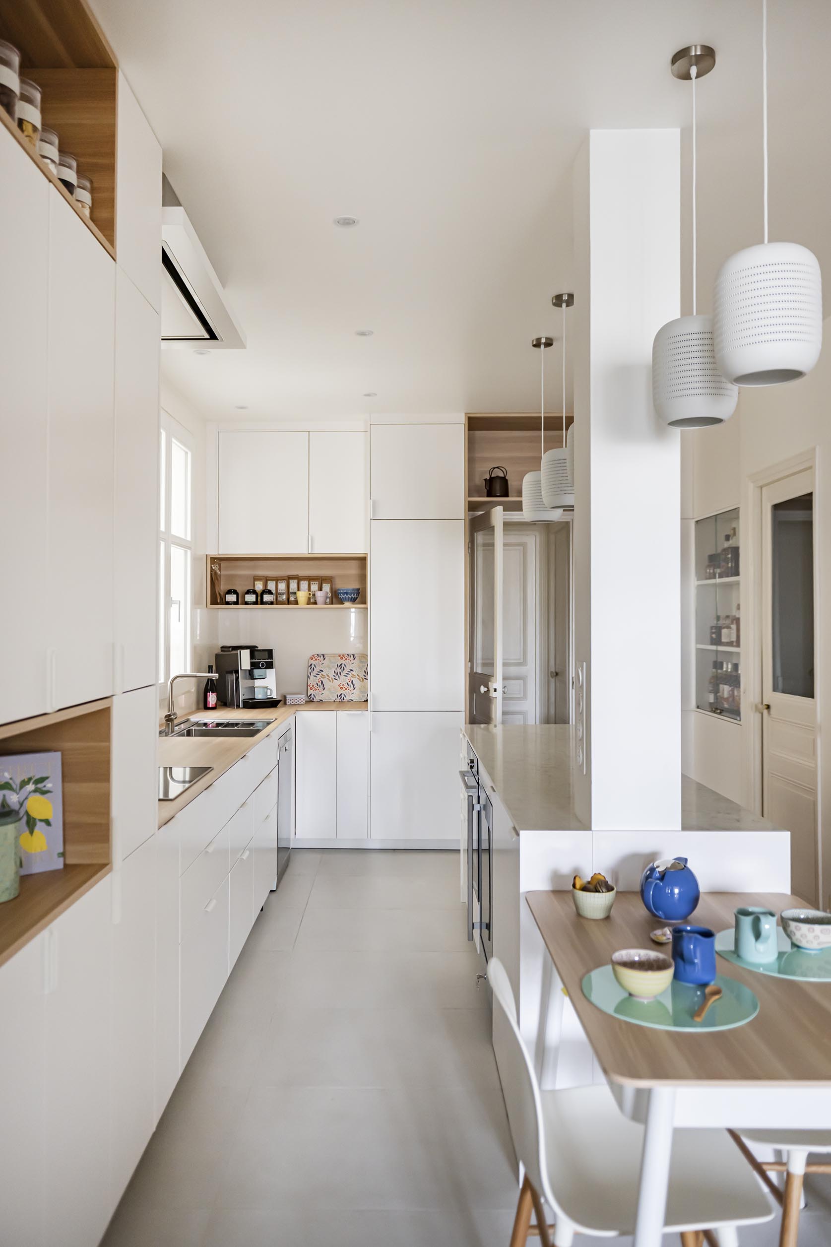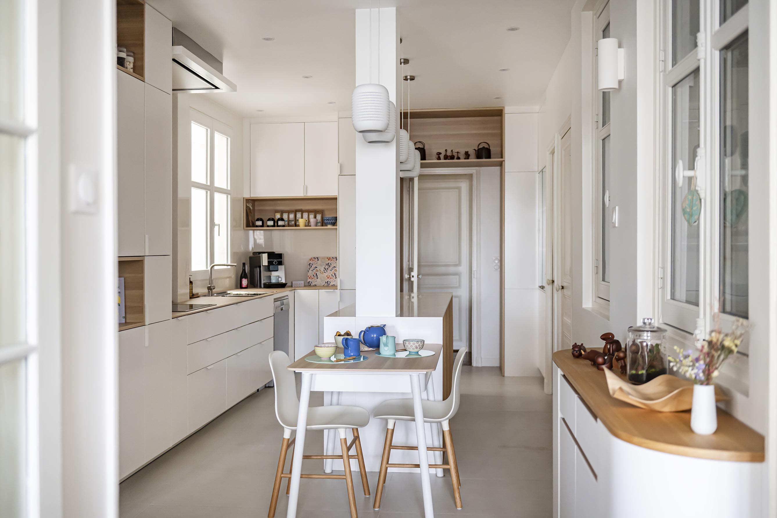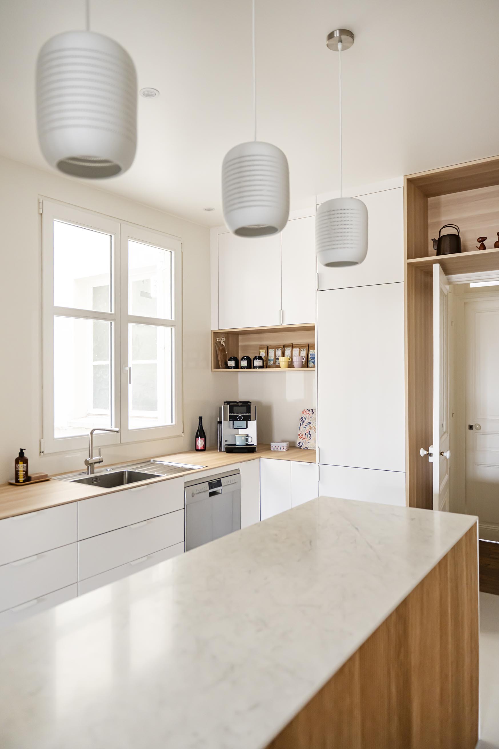 Rénovation totale entrée, cuisine, WC, salle de bain et chambre parentale dans un appartement familial avec tout le charme de l’Haussmannien. Dans ce projet, il a aussi été question d’isolation phonique et thermique, de changement de fenêtres et de création de mobilier sur-mesure. Au programme : modernisation dans un esprit design intemporel et épuré, préservation du charme de l’ancien et optimisation des rangements jusque dans les moindres recoins, tout cela Made in France ou Europe !