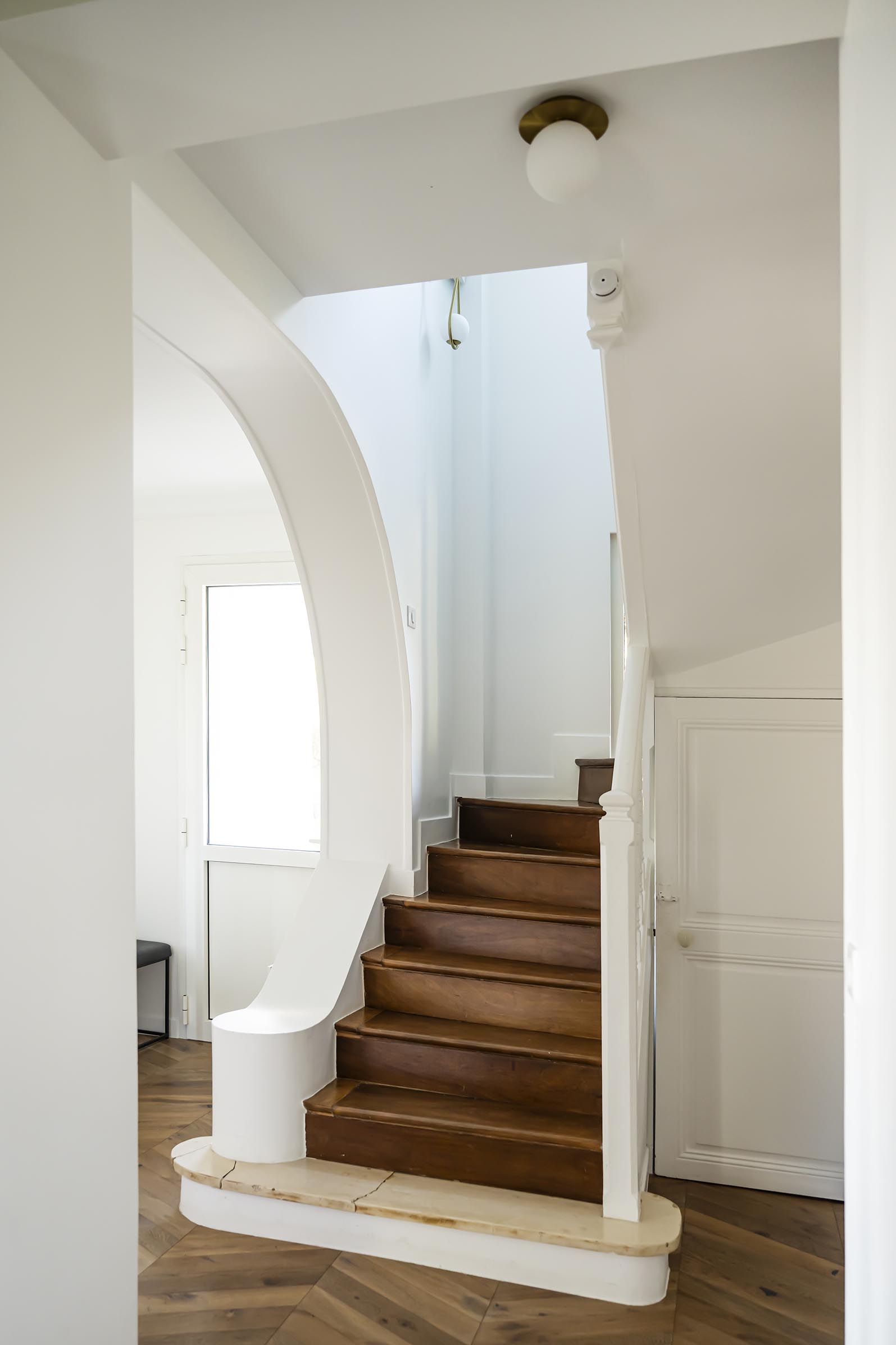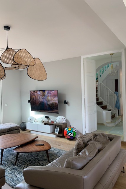 Brief client : « Je veux une maison comme dans les magazine de déco ! ». Cette jolie meulière du Val d’Oise avait perdu de son charme après une isolation par l’intérieur. Nous sommes repartis d’une page blanche et un peu grise en lui apportant une décoration chic et intemporelle et de jolies menuiseries sur-mesure. Ma mission a consisté à théâtraliser l’entrée, redonner du charme et du rangement dans la double pièce de vie et apporter du caractère à la chambre parentale.